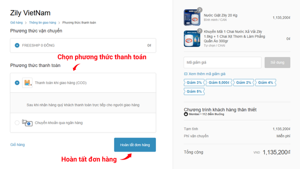 - Bạn có thể chọn 1 trong 2 phương thức thanh toán có sẵn: