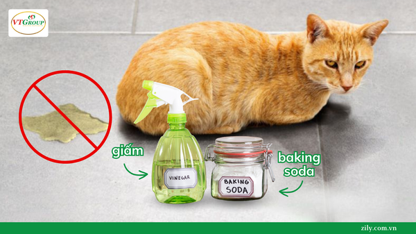 Giấm và baking soda có thể khử mùi nước tiểu mèo