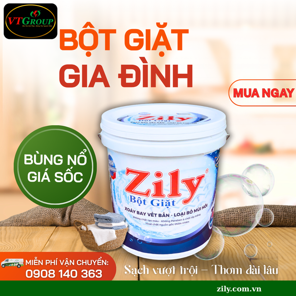 - Bột giặt Zily gia đình: dịu nhẹ, hương thơm bền lâu, an toàn cho da nhạy cảm và da bé yêu.