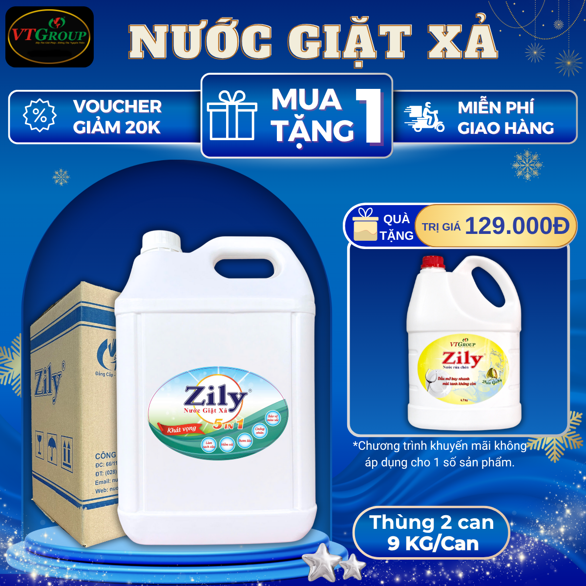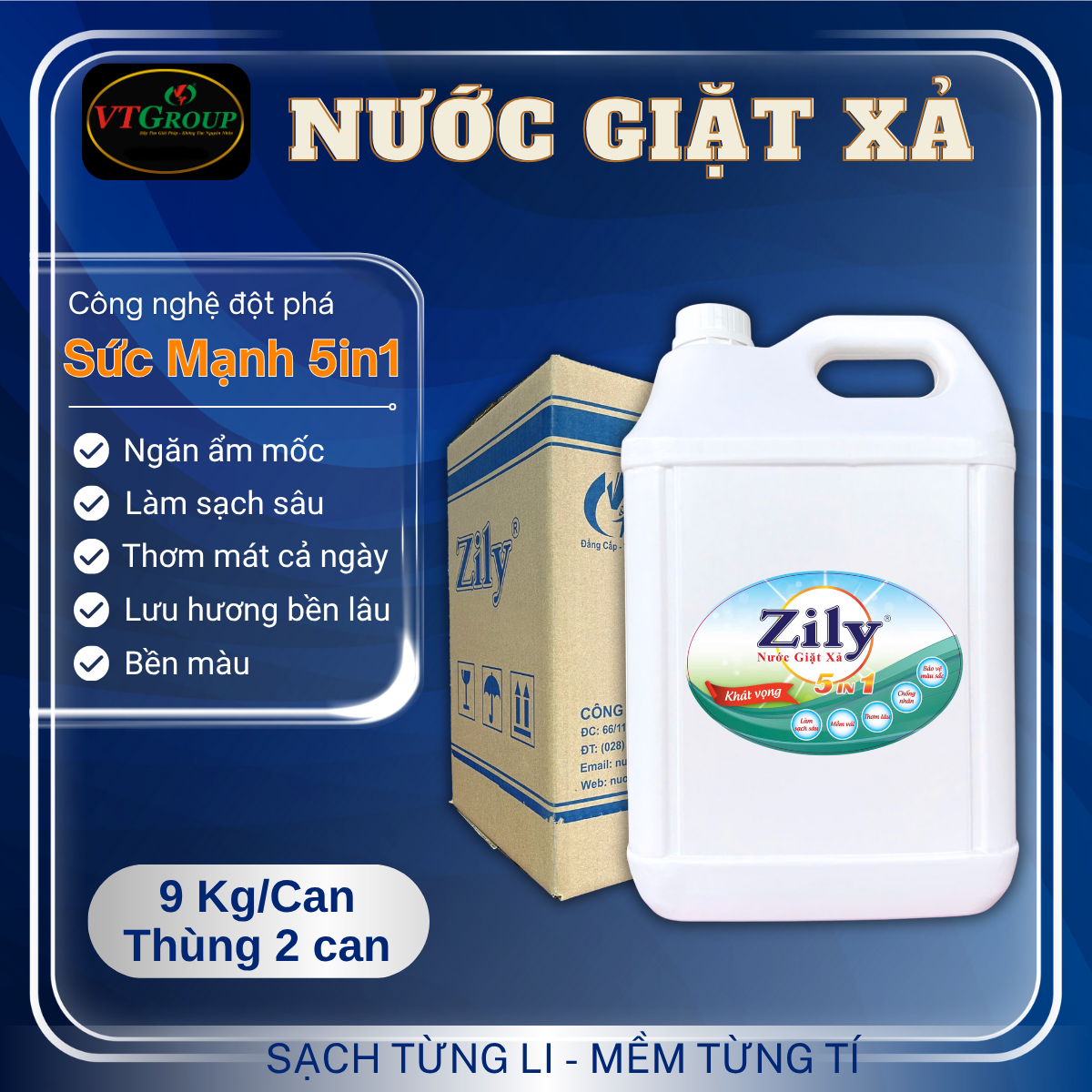 Nước Giặt Xả Quần Áo Zily 5in1 9Kg - 2 Can/Thùng