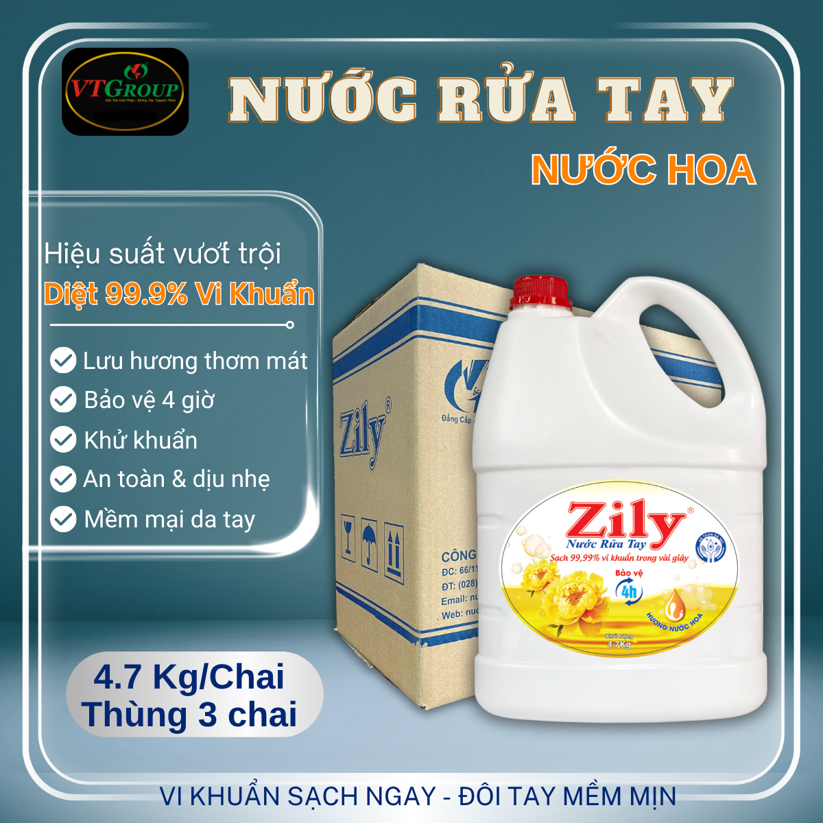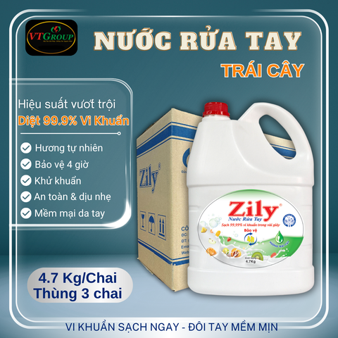Nước Rửa Tay Zily 4.7Kg - 3 Chai/ Thùng