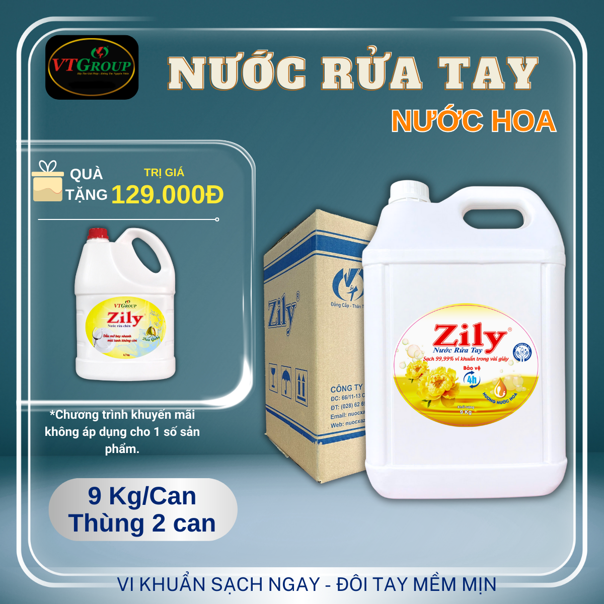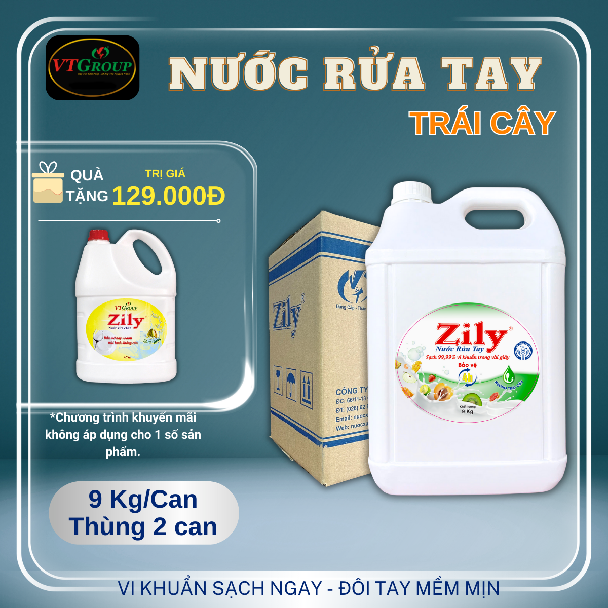 Nước Rửa Tay Zily 9 Kg - 2 Can/Thùng