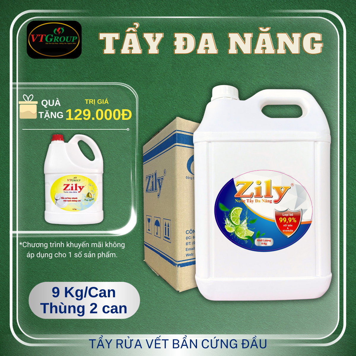 Nước Tẩy Đa Năng Zily 9 Kg - 2 Can/Thùng