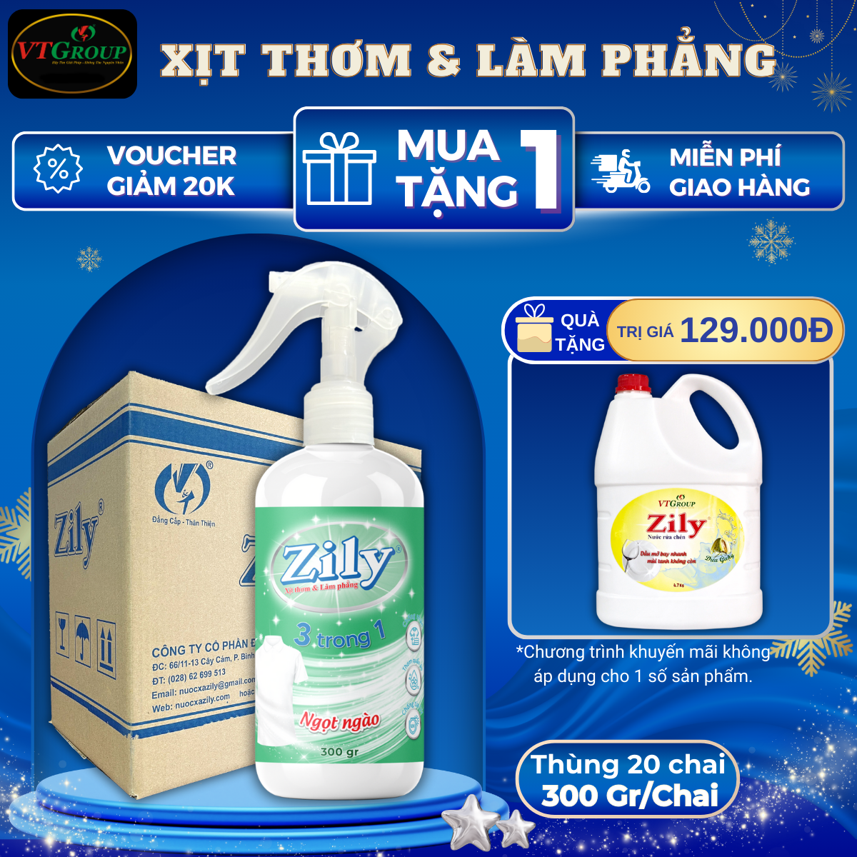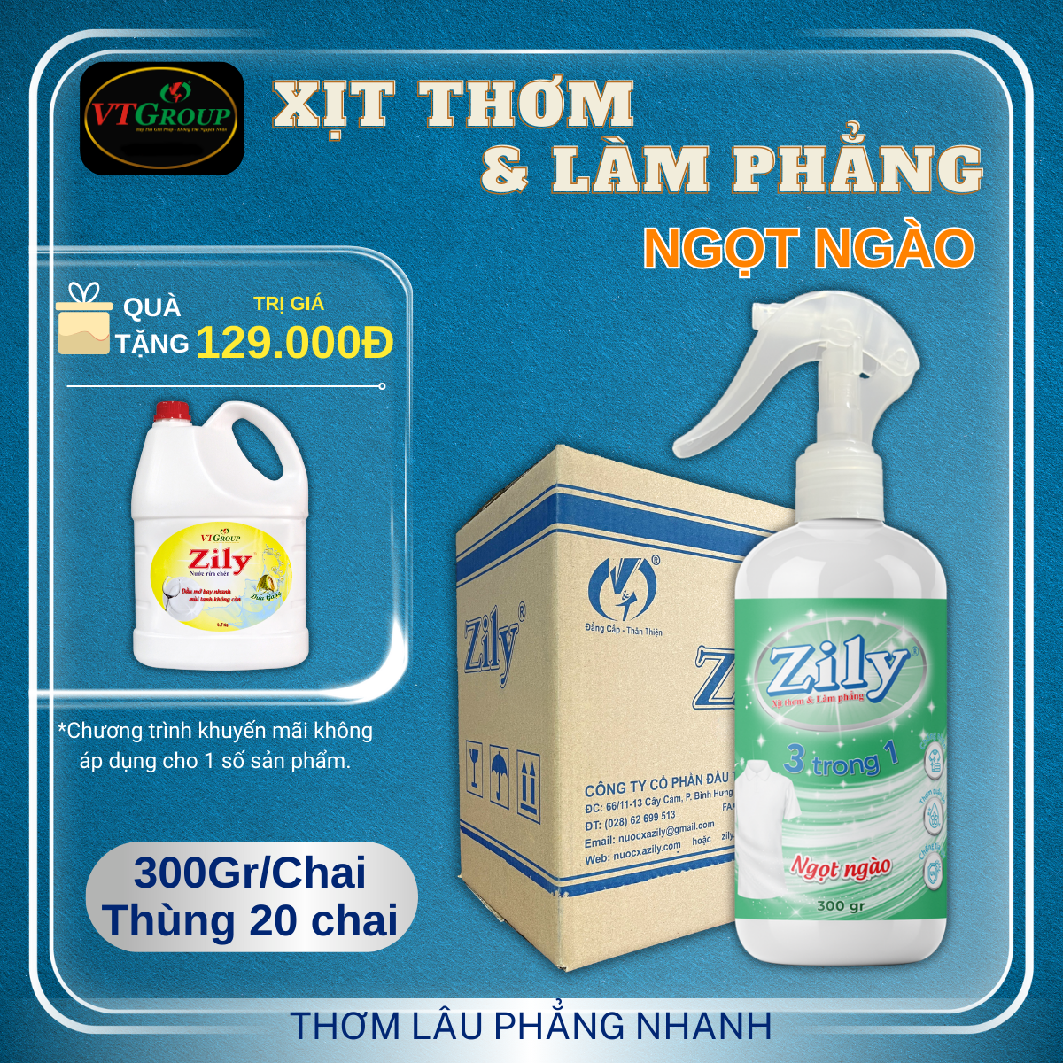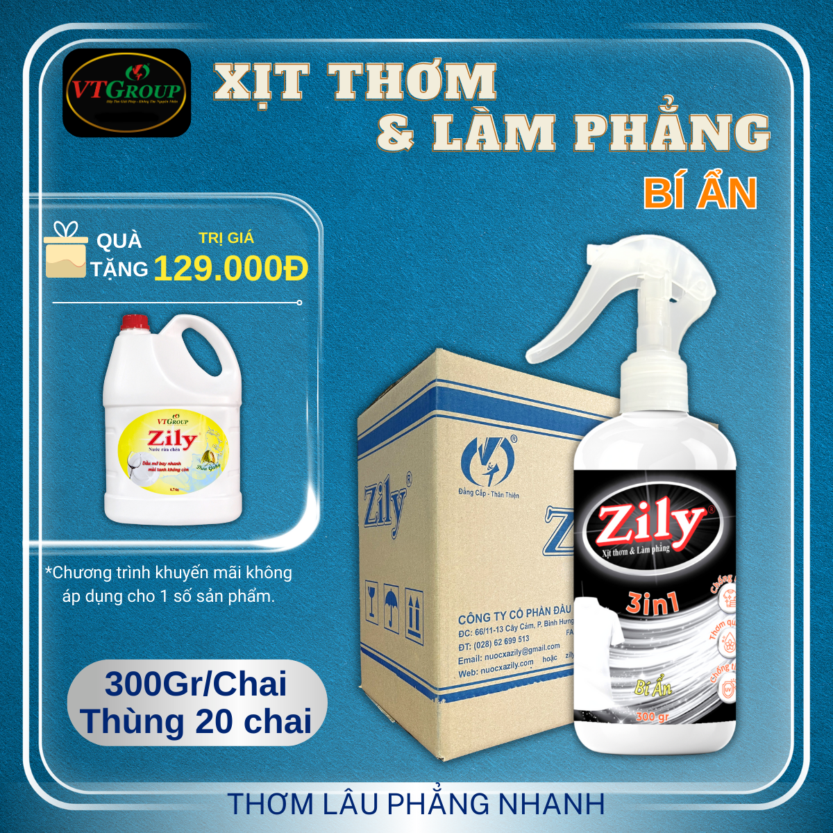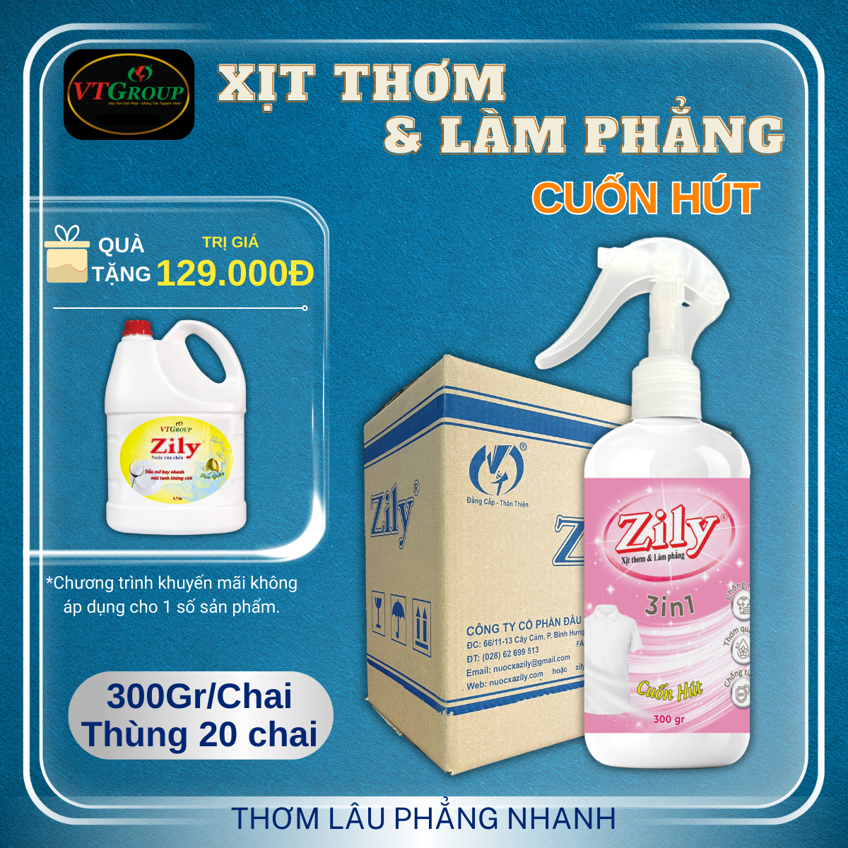 Xịt Thơm & Làm Phẳng Quần Áo Zily 300 gr - 20 Chai/Thùng
