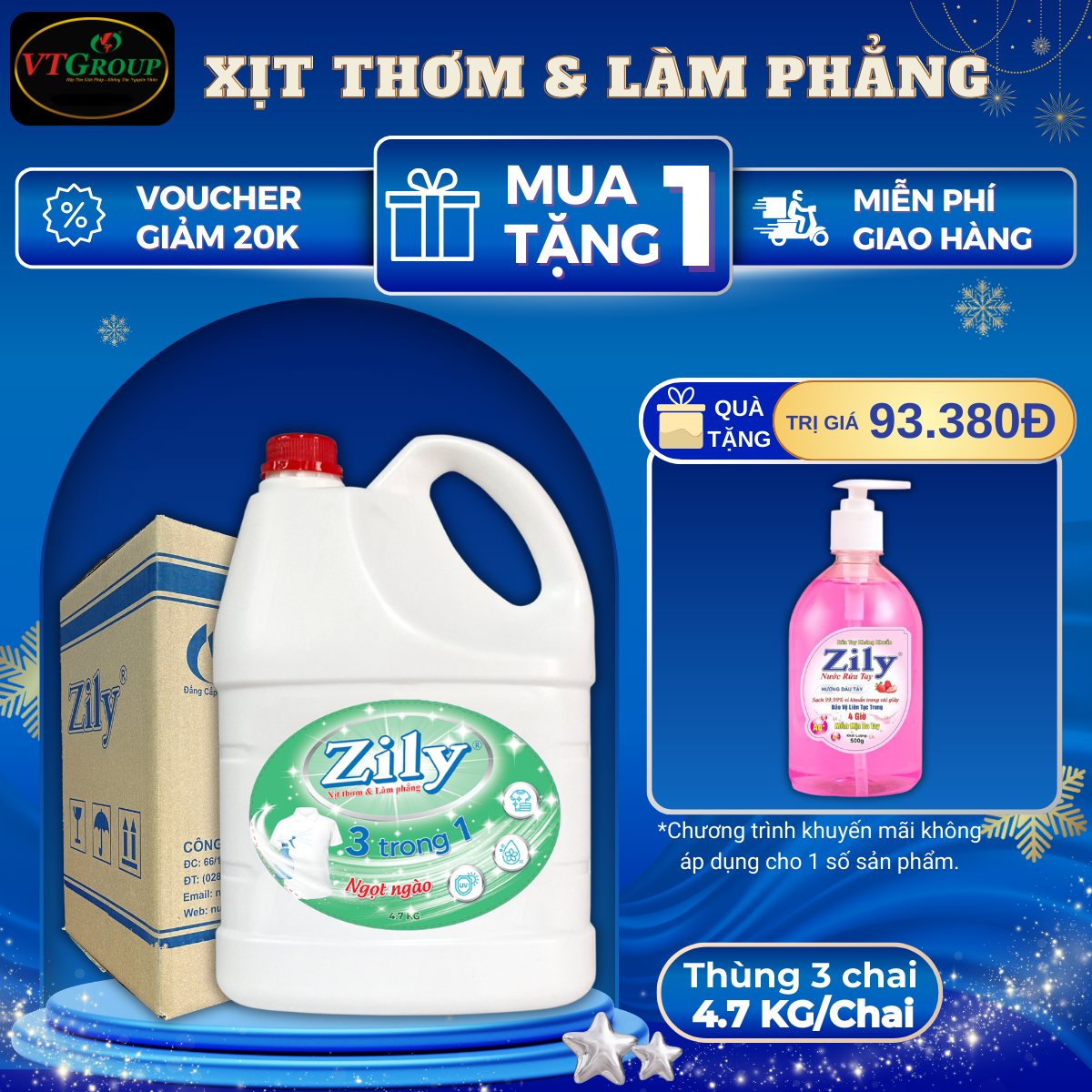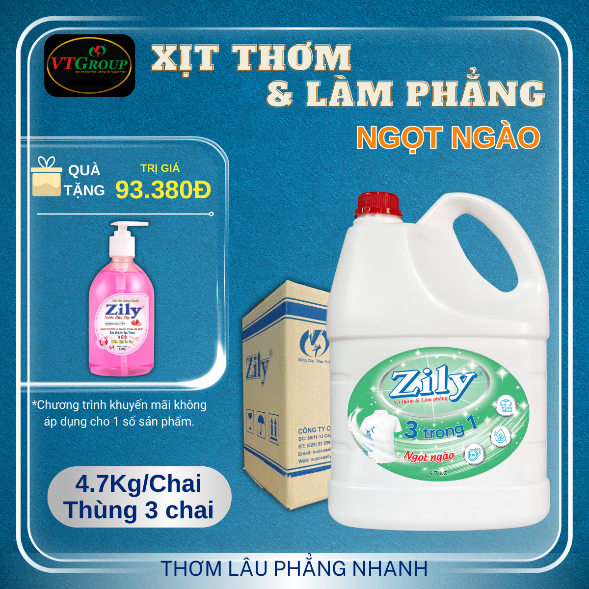 Xịt Thơm & Làm Phẳng Quần Áo Zily 4.7 Kg - 3 Chai/Thùng